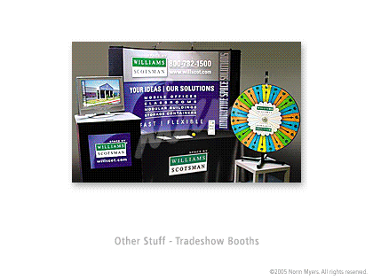 Tradeshow booths, graphics for store entry mats, signage, truck and trailer graphics - Norm's samples shown here.